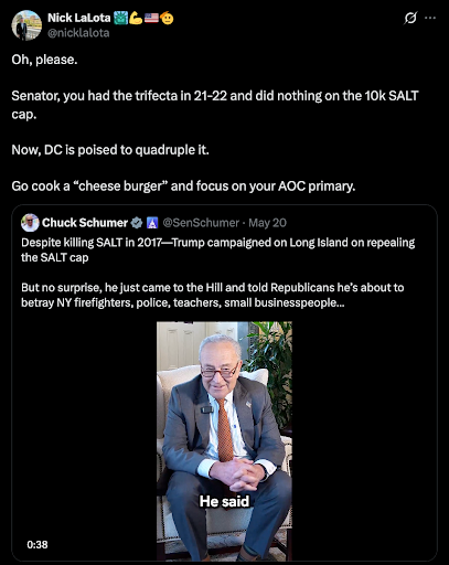 Congressman LaLota Puts Chuck Schumer on Blast Over SALT Misinformation