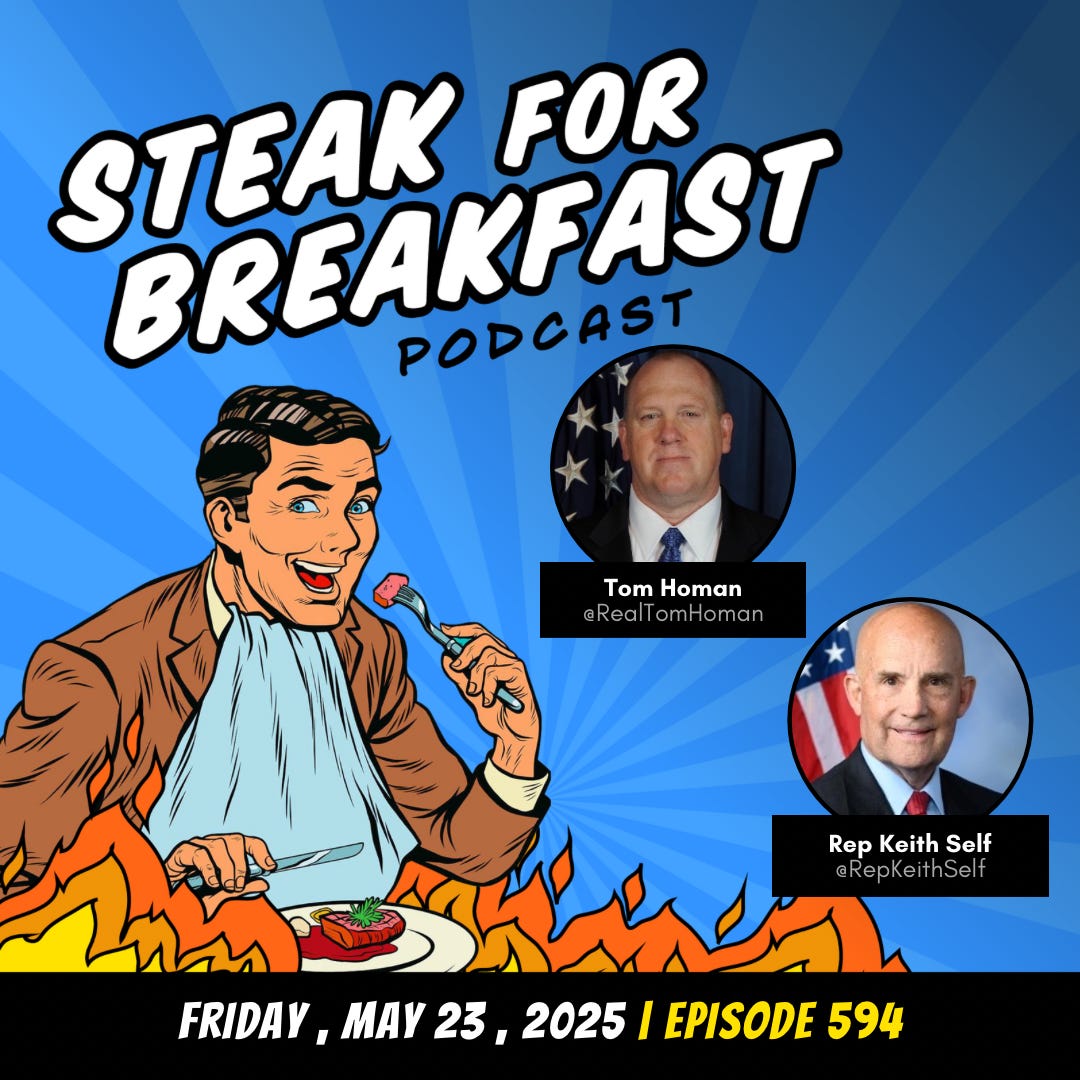 NEW EPISODES ALERTCatch the U.S. Border Czar, Tom Homan and a Quartet of Republican U.S. House Reps. exclusively this week on the Steak for BreakfastEpisodes 592, 593 and 594 Check out this week’s episodes of the Steak for the Breakfast Podcast which featured the U.S. Border Czar, Tom Homan and Republican U.S. House Representatives, Diana Harshbarger (TN-1), Michael Cloud (TX-27), Greg Steube (FL-17) and Keith Self (TX-3) PLEASE SUBSCRIBE FOR FREE ON APPLE PODCASTS AND SPOTIFY, RATE THE SHOW 5 - STARS AND WRITE A REVIEW