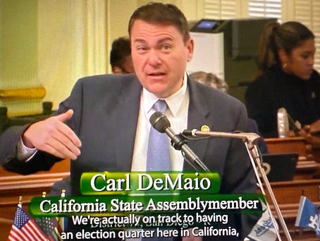 The question is pretty simple… So, does it matter?Let’s begin with a quote: "We owe this freedom of choice and action to those men and women in uniform who have served this nation and its interests in time of need. In particular, we are forever indebted to those who have given their lives that we might be free."Let’s start with this short, moving video released yesterday by The White House. - President Ronald Reagan, Memorial Day, 1983 And now a video. This was released yesterday by The White House, commemorating this day when we honor those who have made the ultimate sacrifice for our country. Now for a few political tidbits… From Sacramento - Have Patterson and Zavala finally shamed legislators from signing NDAs? It is a fairly comment thing, in private business, to have people sign an NDA — which stands for non-disclosure-agreement. This happens when people are collaborating but with information that should not be made public. The emphasis in the previous sentence should be the word private. Relatively recently it’s come out that in the crafting of legislation, some Democratic members of the California Legislature have been signing NDA’s as they work with outside interest groups. Note that the business of the legislature is public, and the public has a right to what is going on. Enter Republican Assemblyman Joe Patterson (R-Rocklin). After a lot of effort on his part, and some embarrassing news stories, looks like a law to ban this sort of thing is (quietly?) moving forward… Ashley Zavala, the ace political reporter for KCRA tv in Sacramento (one of the few true watchdog journalists covering the State Capitol) has been on this story a lot. He reports about it here. If you’re on X, I recommend you follow Zavala and Patterson. California GOP’s General Counsel Heads To DC… In late April, Ashee Titus, a partner in the firm Bell, McAndrews and Hiltachk - and General Counsel for the California Republican Party, flew out to Washington, D.C., and was a panelist in an informational hearing held by the Congressional Committee on House Administration. The hearing was titled, “Why The Wait, Unpacking California’s Untimely Election Process.” Ashlee did a great job giving a five minute opening presentation to the committee in which she summarized all of that factors causing election results in our state taking almost a month after Election Day to be certified. I recommend watching the entire hearing, but at a minimum you should scroll to the 13 minute mark of the video, and watch Ashlee’s testimony. She does a great job. I’m not just saying that because she and her husband Dave (behind her left shoulder) are longtime personal friends. She really knows her stuff. You can watch the hearing on YouTube right here. More from the State Capitol… Assemblyman Carl DeMaio (R-San Diego) is one of our aggressive and articulate conservatives in Sacramento. And he’s been doing a great job on going on the offensive against the Democrats, who have no shame. Here DeMaio gives a speech against AB 930 that he, “exposes how this bill allows illegal immigrants to serve on recount boards AND allow ballots to arrive 7 days after election day!” You can’t make this up. Follow DeMaio on X here. Kermit THE Frog! If you have made it all of the way to the bottom of this e-mail, we’ll end on a lighter note. This week the one and only Kermit the Frog gave the commencement address at the University of Maryland. If you watch it through, you can see him end it singing a rendition of the Rainbow Connection! LOL. That’s a wrap! So, Does It Matter? - with Jon Fleischman is free today. But if you enjoyed this post, you can tell Jon that his writing is valuable by pledging a future subscription. You won't be charged unless he enables payments. |