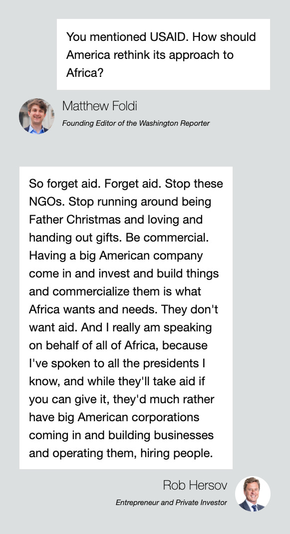 South African businessman Rob Hersov denies any interest in running for president in 2029, when the strategically-significant country has its next major national election. But he’s spent the past several years building a name for himself as the first South African to take on the ruling African National Congress (ANC) Party. Hersov spoke with the Washington Reporter following President Donald Trump’s now-viral Oval Office meeting with South African President Cyril Ramaphosa where, politically, the latter was made into a political example by the leader of the free world. Hersov explained why Trump was a “genius” to describe what is happening to South Africa’s white farmers as a “genocide,” even though he argued that the final stages of genocide are not happening in his home country… yet. While Hersov noted that full-scale extermination of South Africa’s white farmers is not occurring, he compared the country to Germany in 1933. “Who is in the red beret in South Africa today chanting to kill the Boers?” he asked, referring to Julius Malema, the leader of the radical communist Economic Freedom Fighters (EFF). “In 1933, those were the brownshirts jumping up and down, saying, ‘kill the Jews.’” “That's my 1933 analogy, they have 10 percent of the vote, and Cyril Ramaphosa said ‘they've only got 10 percent of the vote. They're not a threat.’ South Africa is 60 million people,” Hersov said. “Ten percent is 6 million. That's a lot of people who want to kill white people.” “Imagine if there was a country where white people would say, kill Chinese people, kill whatever,” he posited. During Ramaphosa’s meeting, Trump played video after video of Malema and his supporters chanting about their bloodthirsty desires. Ramaphosa pleaded ignorance. In Hersov’s assessment, “Ramaphosa’s team was confused.” “They were embarrassed. They were humiliated by these ‘kill the Boer’ videos. But I'm just hoping that what comes out of it is what I want, which is a proper discipline, forcing them to do those three things I’ve laid out,” Hersov said. Trump’s devastating meeting with Ramaphosa was undeniably great for television, but Hersov wants Americans to understand the importance of continued engagement with South Africa, and he has a trio of demands he’d love to see the Trump administration extract from his country’s left-wing government. Heard on the Hill