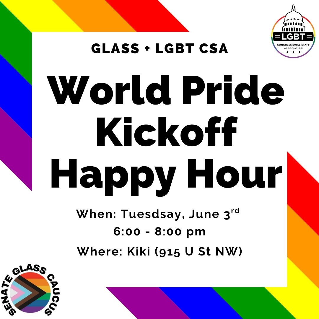 Happy Pride Month! 🏳️⚧️🏳️🌈 We’re kicking off Pride Month and WorldPride 2025 with a packed week of events—and we’d love to see you at as many as you can join! This week, we hope you’ll join us tomorrow for our Kick Off to Pride Happy Hour at Kiki from 6:00-8:00pm; on Wednesday for a WorldPride 2025 panel discussion and reception with Nordics for Equality from 5:00-7:00pm; on Thursday for the Q Street Pride & Power on the Hill Reception at 5:30pm, a Pride Nation Employee Resource Group (ERG) reception at 6:00pm, and Nats Night OUT at 6:45pm; on Friday to join the Library of Congress LGBTQ+ Employees (LC-GLOBE) for a conversation on comics and queerness with Jay Edidin and Miles Stokes from 6:00-7:00pm at LM-649 (in the Madison Building); and on Saturday at 3:30pm to march with us in the Pride Parade! (Graphics are included below.) 🌐 Looking for even more to explore? Find the full calendar of WorldPride 2025 events here: https://worldpridedc.org/events/ Scroll down to see everything GLASS has planned this week and throughout the month. 👇 This WeekTuesday, June 3 June 3 @ 6:00 PM | Kick Off to Pride Happy Hour – Register Now! Wednesday, June 4 June 4 @ 5:00 PM | Celebrating WorldPride 2025: Nordics for Equality – Register Now!