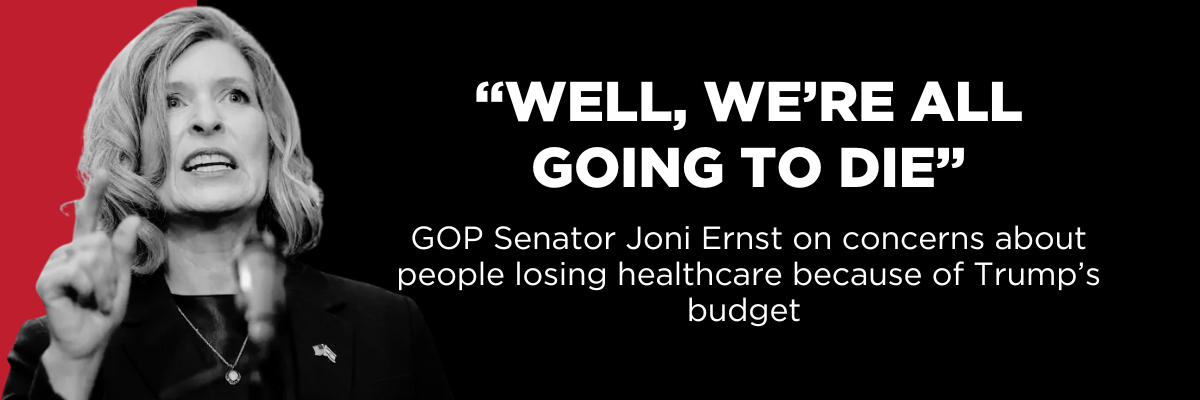 At a town hall in Iowa, GOP Senator Joni Ernst responded to her constituents’ concerns about cuts to Medicaid in Trump and GOP’s budget bill by saying, “Well, we’re all going to die.”