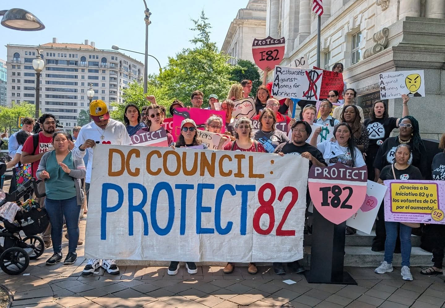 A press conference outside the Wilson Building earlier this week to protect Initiative 82. Photo by Fair Price, Fair Wage.