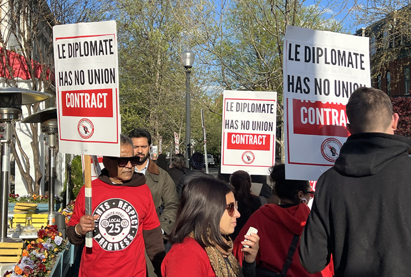 A picket line outside Le Diplomate earlier this year. Photo via Eat Fair DC.