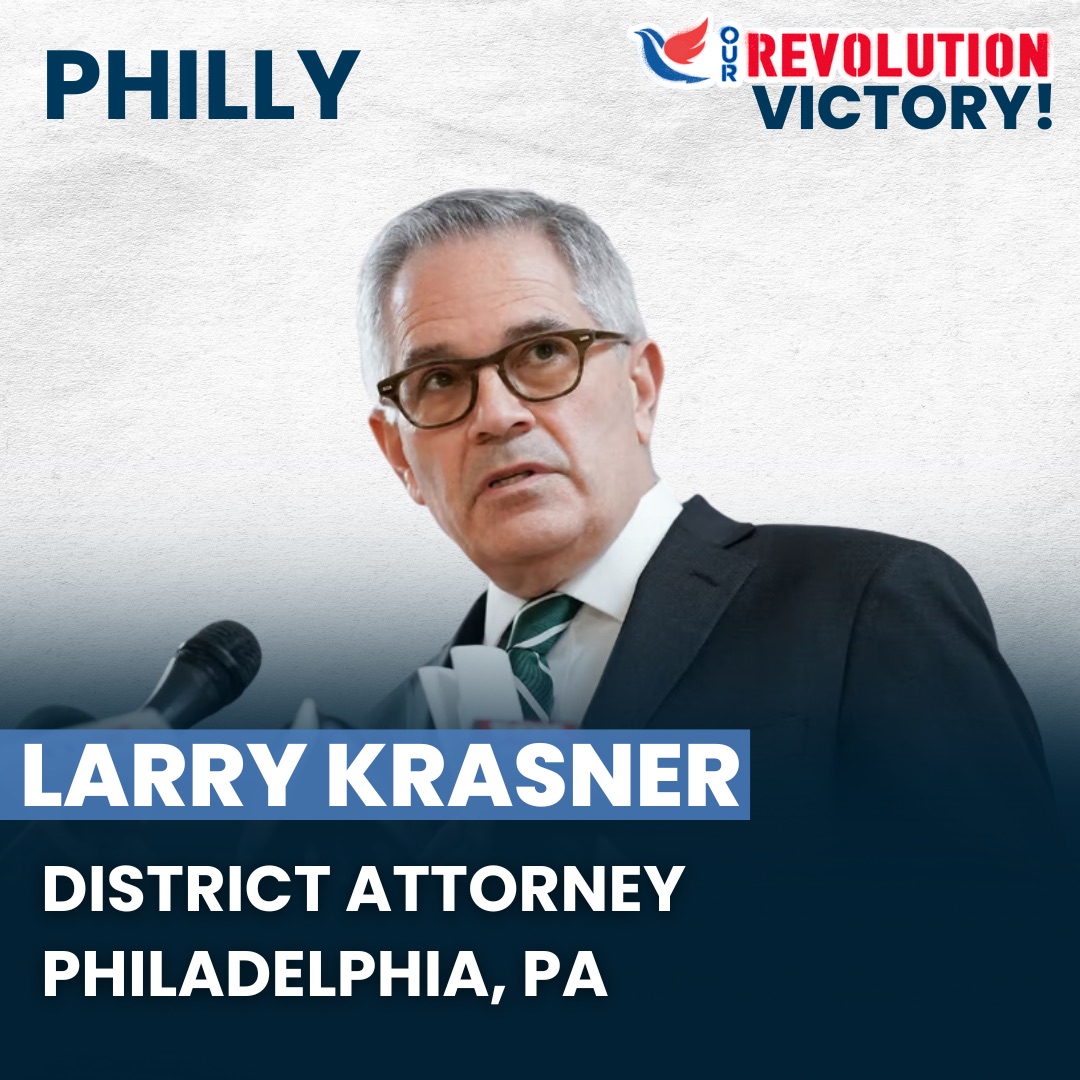Congratulations to Philadelphia District Attorney Larry Krasner for his victory in the Democratic primary. His commitment to ending mass incarceration, abolishing cash bail, and tackling corruption sets a national standard.