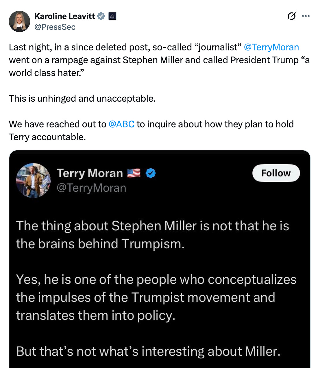 Sponsored by Health Science Institute Trump admin targets COVID vaccine [Big Pharma LIVID]Dear Reader He’s done it again… RFK Jr is finally following the science and tossing out guidelines saying children need yearly COVID vaccines, and Big Pharma is LIVID. The COVID vaccine is one of their biggest cash cows… making them over $25 Billion in 2023 alone! But what really scares them is what could be coming next. RFK Jr is now in perfect position to reveal Big Pharma’s biggest secret. A secret that, if exposed, could cost them much more than the COVID vaccines… We’re talking about hundreds-of-billions in ill-gotten profits and dark money political donations, which is why they’ll do anything to keep you from learning about THIS. You can get full details on the secret Big Pharma hopes you’ll never hear by watching this video TODAY. P.S. Republicans and democrats will be equally outraged by this stunning Big Pharma secret… But most importantly, it could just save your life. Get the full facts here now while it’s still available online. ABC “reporter” suspended after crashing out on Stephen MillerABC suspended Terry Moran after he called White House Deputy Chief of Staff Stephen Miller "a world-class hater" in a spiteful X post, Sunday.
