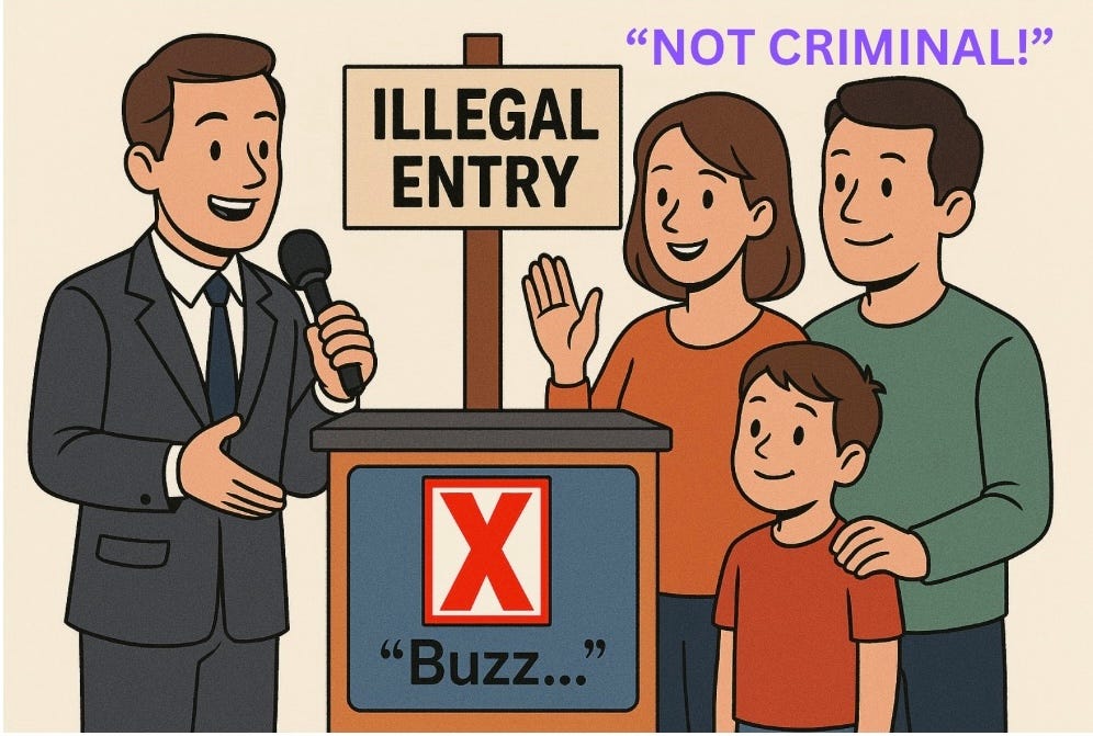 The question is pretty simple… So, does it matter?Issue Tool Kit: Why Illegal Entry to the U.S. is a Criminal OffenseThis column will help you explain to people why illegal entry into the United States is considered a criminal offense despite some attempts to characterize it as a civil one.The Civil vs. Criminal DistortionIllegal immigration has been portrayed at times as a civil matter, but the law has been misconstrued. It is a criminal act to cross into the United States outside of designated ports, punishable by a fine and up to 6 months in prison for a first-time offense, under 8 U.S.C. § 1325. However, some argue for its treatment as a civil matter, with an emphasis on status and rights instead of the act of entry. This line of argument overlooks the express criminality of the act, as established in federal law. The source of confusion is the Immigration and Nationality Act's civil proceedings, which address being present in the U.S. without status rather than the initial illegal entry. This two-track system allows for both criminal and civil penalties, with the criminal track generally being downplayed by those trying to diminish the seriousness of illegal immigration. The Law is ClearIllegal entry is criminalized in 8 U.S.C. § 1325 without requiring direct witnesses to the act. Circumstantial evidence, such as the lack of documents, will suffice for prosecution. Under the Trump administration's zero-tolerance policy, thousands were prosecuted under this statute, making it evident that it is criminal. But the Biden administration prioritized civil proceedings, which conveyed the message that illegal entry is merely a civil offense. This shift in enforcement, not in law, emboldens the myth. The law remains the same, and unlawful entry is a crime, regardless of policy preference. Ignoring this reality erodes the rule of law, a fundamental principle essential to maintaining order. Federal Criminal Code — U.S.C. § 1325 (a) Improper time or place; avoidance of examination or inspection; misrepresentation and concealment of facts: Any alien who enters or attempts to enter the U.S. at an undesignated time or place, eludes inspection, or uses false representation or concealment of material facts faces a fine, up to 6 months imprisonment for a first offense, or both; subsequent offenses can lead to up to 2 years imprisonment… So, Does It Matter?Characterizing illegal immigration as a civil matter disarms deterrence. If illegally entering the U.S. is not subject to any criminal penalty, then the incentive to obey legal procedures is lost. Such a viewpoint also diverts attention from individual responsibility to making excuses based on systems, a scheme that undermines accountability. The recent unrest in Los Angeles, where immigration enforcement activities by federal law enforcement officers created an excuse for some to engage in violence, is a result of such framing. Protesters and certain leaders demanded leniency, disregarding and diminishing the criminality of illegal entry. This not only endangers public safety but also mocks the legal framework established to ensure national sovereignty and order. A Call for ClarityThe debate over illegal immigration must recognize its criminal nature. 8 U.S.C. § 1325 is not a suggestion; it's a law. Calling it a civil matter is a talking point convenient for individuals who prefer compassion to consequence, but it does not accurately reflect reality. With Los Angeles and other cities in crisis, understanding this distinction is crucial. Leaders must enforce the law, not re-interpret it. The precedence must be upholding the rule of law, ensuring that entering the U.S. illegally is treated as the crime that it is, not rationalized as a minor civil matter. This is necessary to maintain order and respect the legal process. Bottom line - it is totally appropriate to call someone who violates 8 U.S.C. § 1325 a criminal. They broke the law. Please share this with others you think could use a quick primer to be versant on this topic! So, Does It Matter? - with Jon Fleischman is free today. But if you enjoyed this post, you can tell Jon that his writing is valuable by pledging a future subscription. You won't be charged unless he enables payments. |
