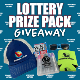 Wisconsin Lottery hat (est. value = $15) Wisconsin Lottery koozie (est. value = $1) Wisconsin Lottery sunglasses (est. value = $5) Wisconsin Lottery outdoor kit (est. value = $2) Crossword scratch ticket (value $2)