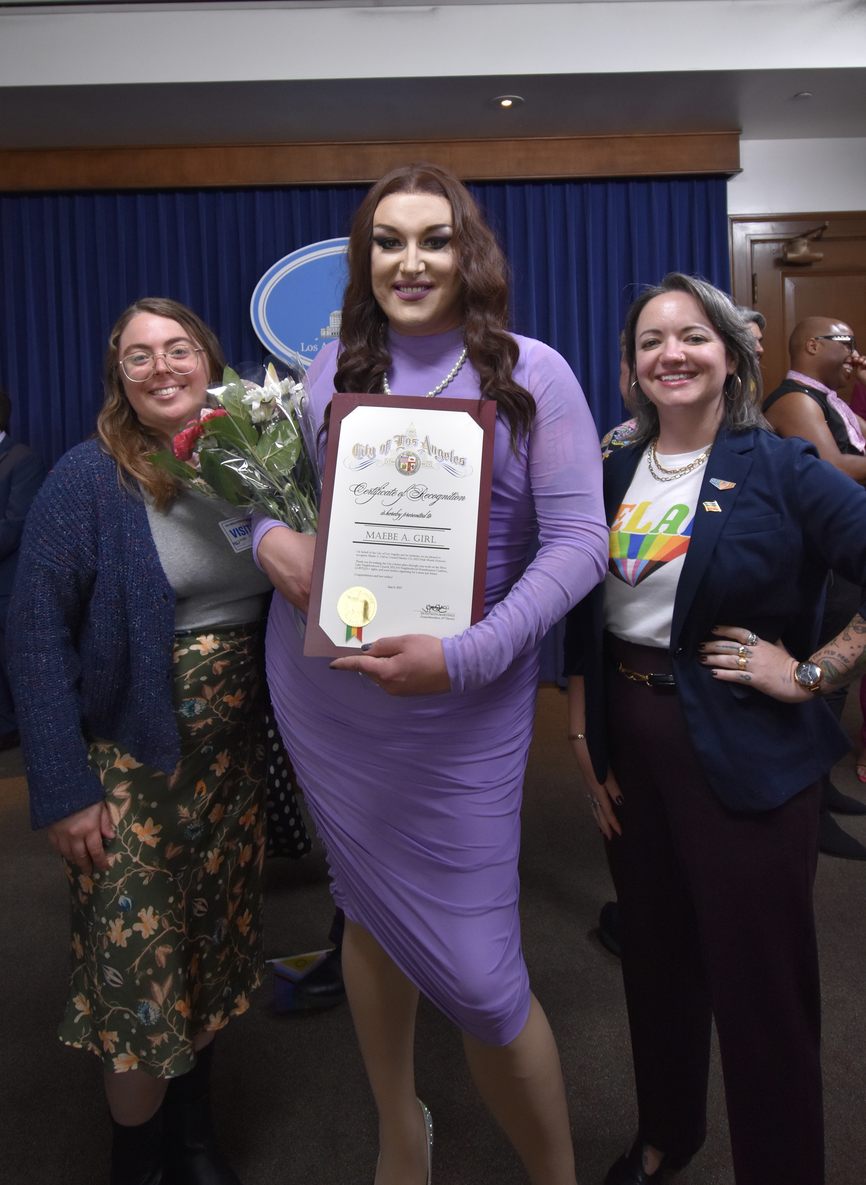 I’m also a drag queen—the first drag queen elected to public office in the US when I ran for Silver Lake Neighborhood Council in 2019. But while drag is what I do, trans is who I am. I am trans non-binary and my pronouns are she/her/they/them.