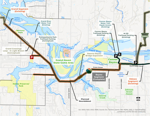 The Bayou Segment also officially completes the Grand Crossings Loop—a 24-mile continuous route that circles the Grand River between US-31 and M-231.