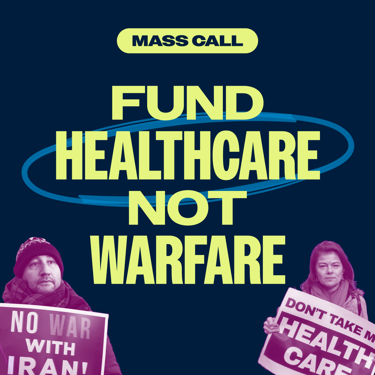 RSVP for tonight's mass call to navigate this political moment together, and learn how you can take action to tell our lawmakers: we want healthcare, not warfare.