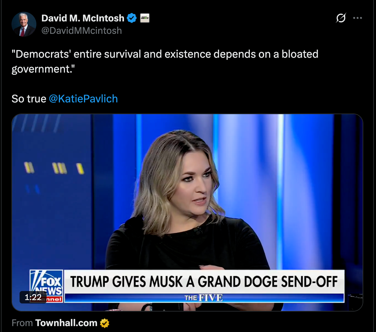 “Democrats’ survival depends on bloated government, taxpayer dollars to NGOs and universities for indoctrination, and government handouts.”