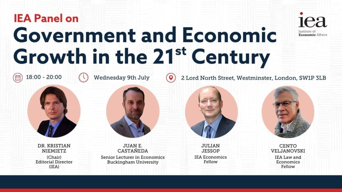 [INVITATION] IEA Panel on Government and Economic Growth in the 21st CenturyGovernment and Economic Growth in the 21st Century: A Classical Liberal ResponseThe IEA is hosting a panel event on Juan E. Castañeda’s edited book ‘Government and Economic Growth in the 21st Century: A Classical Liberal Response’. This event will take place on Wednesday, 9th July, from 18:00 to 20:00 at the IEA (2 Lord North Street, Westminster, London, SW1P 3LB). The book is a Classical Liberal response to the way leading economies have been (mis)managed in the last three decades and the principles and models that have guided such policies, particularly since the outbreak of the Global Financial Crisis in 2007-09 which has resulted in enlarged government deficits and public debt, as well as more intrusive government regulation and virtually no economic growth. The discussion starts at 18:30 and will be preceded by drinks from 18:00. Spaces are limited and will be given on a first-come, first-served basis. If you would like to attend either sign up through the ‘RSVP’ button, or RSVP to [email protected]. For your reference, full details are provided below. IEA Panel Event on ‘Government and Economic Growth in the 21st Century’ Panellists: Kristian Niemietz (chair), Juan E. Castañeda, Julian Jessop, Cento Veljanovski Date: Wednesday 9th July Time: 18:00 drinks, 18:30 discussion start Location: IEA (2 Lord North Street, Westminster, London, SW1P 3LB) You’re currently a free subscriber to Insider. For the full experience, upgrade your subscription. Paid subscribers support the IEA's charitable mission and receive special invites to exclusive events, including the thought-provoking IEA Book Club. We are offering all new subscribers a special offer. For a limited time only, you will receive 15% off and a complimentary copy of Dr Stephen Davies’ latest book, Apocalypse Next: The Economics of Global Catastrophic Risks. |