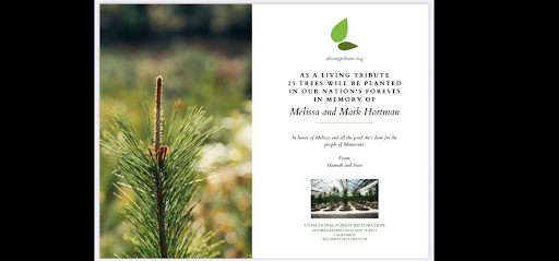 Personally, I have received messages around the country on the impact of Melissa and Mark Hortman. My brother and his fiancée had 25 trees planted in California, and I know people all over the country and world are honoring the Hortmans.