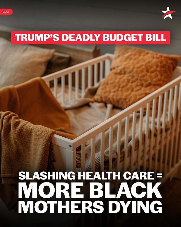 Now Trump’s budget slashes Medicaid and maternal health funding — putting more Black families at risk. This isn’t just cruel. It’s deadly. We need to stop the cuts and pass the People's Budget.
