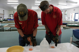 Eagle Lake rainbow trout spawning operations wrapped up in May, with 1.6 million eggs collected. The majority of the eggs were shipped to Game and Fish’s Daniel and Clark’s Fork hatcheries and the Wigwam Rearing Stations. The remaining eggs were shipped to a private hatchery and the Bellvue-Watson Fish Hatchery in Colorado.