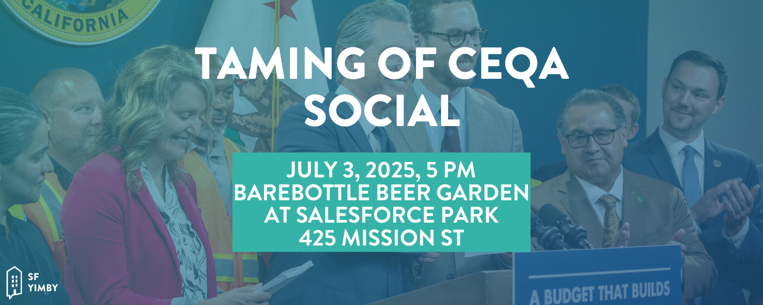 Join SF YIMBY for a popup Happy Hour to celebrate the historic wins in Sacramento this past Monday, credited by Governor Newsom to the role of the YIMBY movement in changing the conversation.