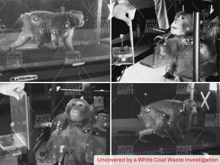 But veterinary records, experimental protocols, videos, and photos exclusively uncovered by WCW exposed the ongoing torture at the San Diego VA. Working with NIH-funded University of California labs, San Diego VA experimenters paralyzed dozens of monkeys, locked them in restraint devices, and forced them to run on treadmills—before killing them.