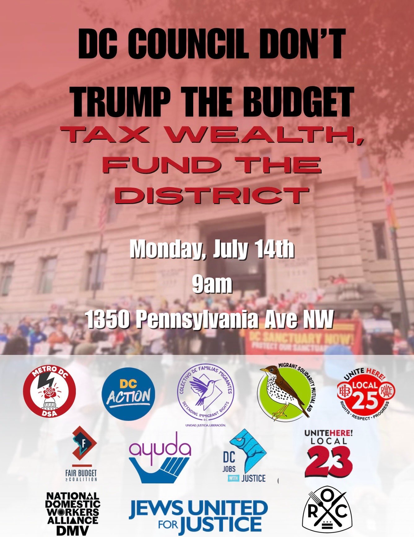 On Monday July 14, DC Council will hold its first vote on the DC budget. The budget as it stands now is deeply inequitable, with cuts hitting working-class and low-income Black and Brown communities the hardest, including severely underfunding the DC Healthcare Alliance.