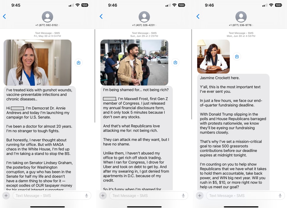 There’s no such thing as “The Democrats”A line I heard once that I really like: people conceive of political parties as marching bands, but they’re really more like music festivals. There’s not a conductor telling everyone how to act, what to say, and what not to say. There’s sort of an organizing committee via the DNC, but every candidate, advocacy group, and state party can communicate however they’d like. To complete the metaphor, everyone has their own stage. Likewise, people think of “the Democrats” as a monolithic institution, with a master list of donors whose email addresses and phone numbers they give out. How it actually works: individual campaigns¹ are free to message whoever they want, with any message they want, and with whatever frequency they want. All of this sets up a tragedy of the commons. Every campaign is acting rationally by trying to communicate with (and raise money from) people as much as they possibly can. But politics suffers because people are spammed with frequent, low-quality, sensationalist, dishonest, and largely indistinguishable messages. The same thing is happening on the Republican side, even if the messaging itself is different. Campaigns in both parties are guilty here. How your information gets traded and soldIf you’ve ever wondered why it’s so hard to get your name off of email lists after you’ve donated money or even if you’ve just signed up to volunteer, here’s why. For most campaigns, buried deep in their privacy agreement is the right to trade or sell your information however they want. They can sell their list of emails to generate more money for their campaign; they can buy them from other campaigns to try to raise money from new people.² Here’s a screenshot of an email I got from a campaign that was interested in selling me their email addresses. It’s a pretty good reflection of how this stuff works.³ This campaign was offering me hundreds of thousands of email addresses and phone numbers. That’s a small fraction of the full political universe, where there’s contact info for tens of millions of people. This is how your info gets passed around, and why you end up receiving text messages like these, from candidates and campaigns you’ve never heard of. Text/email fundraising sets up totally misaligned incentivesSaid another way, no one here has any incentive to be a good steward of either people’s contact information or of Democratic messaging generally.