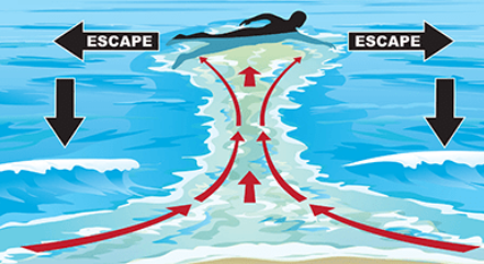 - Follow the current to assess which way it's flowing. Then, swim perpendicular to escape it.