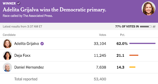 ADELITA GRIJALVA WINS ARIZONA SPECIAL ELECTION PRIMARY FOR CONGRESS