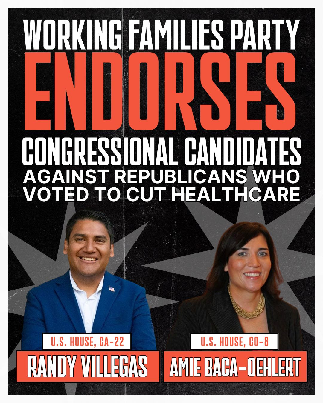This month, we’re proud to have endorsed our first two Working Families Party candidates for Congress in 2026, both running to defeat Republicans who voted to rip healthcare away from millions.