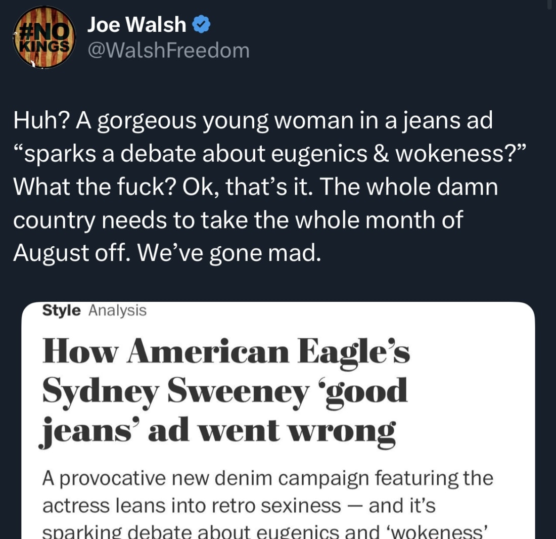 From the tragic to the controversial, I expressed this opinion about the Sydney Sweeney “Good Jeans” ad campaign for American Eagle: