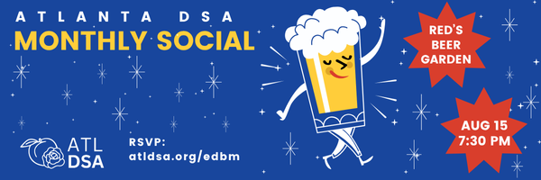 Join us Friday, August 15 at 7:30PM at Red's Beer Garden (1328 Boulevard SE, Atlanta, GA 30315) for our monthly Eat, Drink, and Be Marxist social! Members and non-members welcome - feel free to bring a friend! Both alcoholic and nonalcoholic options are available for purchase. You'll find us in the back picnic table area. See you there!