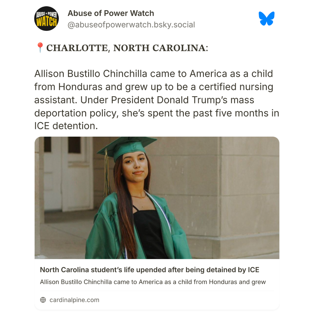 We hope you’ll follow @abuseofpowerwatch.bsky.social on Bluesky to stay informed and help us spread the word by sharing our content with your networks as well. We can’t let these stories be overlooked or swept under the rug.