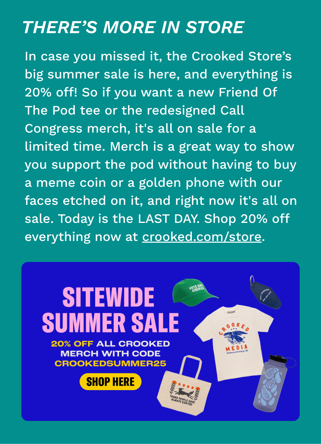“The Republicans are pretty likely to come out ahead,” one analyst told the Washington Post.“It’s just a question of how much they come out ahead.” CAPITAL UNCHILL“No fucking way.” It’s not every day you hear Senate Minority Leader Chuck Schumer drop an F-bomb. But these are bizarre times, and Democrats are loosening their ties. In this case, Schumer was reacting to Donald Trump’s attempt to extend his grip over Washington D.C.’s police force. Trump needs Congress’s approval to control the city’s police force for more than 30 days — and he needs several Democratic senators to back him. The president knows that’s not gonna happen… so, now, he’s floating the idea of retaining control of the police as long as he likes, without approval. “We’ll fight him tooth and nail,” Schumer said in an interview. Meanwhile, tensions in D.C. are rising between Trump’s feds and the local citizens. Today, the city’s police chief ordered local cops to share information with federal authorities about people who aren’t in custody, such as drivers stopped at traffic stops and checkpoints. Trump said he wants to use traffic stops to find undocumented migrants. “Sir, you don’t want to do this,” one protestor shouted at law enforcement last night. “You do not want this role in history. You did this job to protect and serve. Look what they’re doing to you. This is the community.” These are freaky times in this city. But residents are bonding over their love and appreciation for their home. I highly recommend you read this love letter to D.C. written by a local journalist. She writes: “While D.C. might be full of people who want to change the world, now we have to fight to not let the world change us.” WHAT ELSE?Melania Trump is threatening Hunter Biden with a lawsuit for making a claim about deceased child sex predator Jeffrey Epstein, in the most gossipy, 2025-esque headline imaginable. What did Hunter say? “Epstein introduced Melania to Trump. The connections are, like, so wide and deep.” Allegedly, Biden’s comments caused Melania “to suffer overwhelming financial and reputational harm,” and she’s demanding a retraction. Hunter’s response? “Fuck that. That’s not going to happen.” Ball’s back in your court, Melania! Trump cold-called the Norwegian finance minister to bug him about getting a Nobel Peace Prize last month. “Out of the blue, while Finance Minister Jens Stoltenberg was walking down the street in Oslo, Donald Trump called … He wanted the Nobel Peace Prize — and to discuss tariffs,” Norway’s Dagens Næringsliv newspaper reported. Trump is sooooo thirsty for that Nobel. U.S. wholesale prices rose at the fastest rate in three years, in yet another sign that Trump’s tariffs are about to make your life more expensive. Shoutout to the time Trump justified his trade war by saying American children can handle having fewer toys. The dirt on Trump’s nominee to control America’s economic stats keeps getting filthier. E.J. Antoni was a “bystander” at the Capitol riot, according to the White House. He was literally in the crowd, according to a photo of him that day. This guy worked for the right-wing think tank tied to Project 2025, so are you really surprised? Meta has allowed its AI chatbots to “engage a child in conversations that are romantic or sensual,” create false medical info and assist users in arguing that Black people are “dumber than white people,” according to internal company documents reviewed by Reuters. The company reportedly removed the parts about children… but what about the other policies?! Light at the End of the Email…Violent crime in cities along the Mexican border fell to their lowest levels in decades last year, according to FBI data. You hear that, MAGA? Last year!!! A judge ordered that Alex Jones’ far-right Infowars cesspool be liquidated to help pay for $1.4 billion in damages to Sandy Hook victims’ families. Jones famously repeatedly called the shooting a hoax, leading to a defamation case that’s now toppling his incel empire. “South Park” viewership has skyrocketed since the creators started making fun of the Trump administration. The show’s second episode of this season saw 6.2 million viewers and is the highest-rated episode since 2018. The first episode also had 6 million viewers. Scientists believe that a massive star exploded while being torn apart by a black hole, causing one of the most bizarre explosions ever observed in the universe. Observed by humans, that is… On that note: Who’s ready for a planet parade? Venus, Jupiter, Saturn and Mercury are visible to the naked eye, and you can use binoculars to see Uranus and Neptune. A couple in Tennessee saved a stray dog and her puppy after finding them in the woods — then the mama brought them five more pups. They’re all happy and healthy now, and after the story went viral, social media users shared tales of their rescue dogs. Along with many adorable pictures, of course. Happy Panamanian Golden Frog Day! It’s a day “dedicated to raising awareness about one of the world’s most endangered toads,” according to the Associated Press. Check out this ribbeting video of one of the frogs at a Chicago zoo. You’re currently a free subscriber to Crooked Media. For the full experience, upgrade your subscription. |