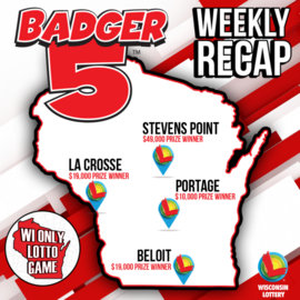 Two days later, a winning $19,000 Badger 5 jackpot ticket was drawn from a ticket sold at Woodman's Food Market in Beloit for the August 10 drawing.