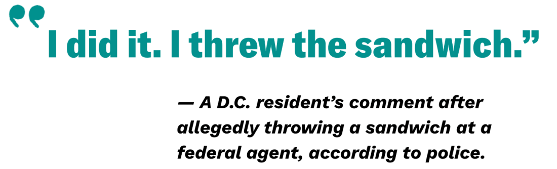 What A Day: The Sand-Witch TrialsTrump officials are maniacally focused on prosecuting a guy for throwing a sandwich — and can’t spell the name of their own handpicked top cop.SUB PLOT THICKENSWelcome to Donald Trump’s absurd D.C. takeover, where top officials are maniacally focused on prosecuting a guy for throwing a sandwich, and can’t spell the name of their own handpicked top cop.