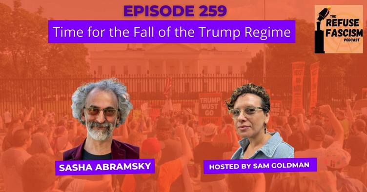 Episode 259 dropped August 17: We share host Sam Goldman's speech from the kickoff rally at Dupont Circle that announced the new call to action: The time has come for…THE FALL of the TRUMP FASCIST REGIME – Beginning November 5, 2025 – Washington DC