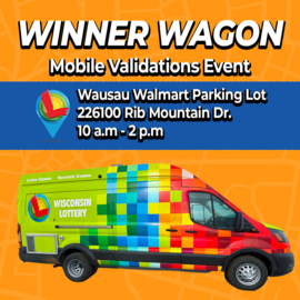 It's your lucky day, Wausau! August 27, from 10 a.m. to 2 p.m., the Wisconsin Lottery Winner Wagon will be at the Walmart parking on 226100 Rib Mountain Dr. for its first-ever mobile validations event.