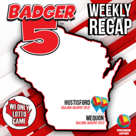 A $64,000 Badger 5 jackpot was split between winning tickets sold at a BP in Hustisford and the Metro Market in Mequon for the August 18 drawing.