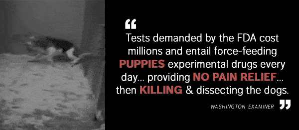 - An outdated, 80-year-old FDA regulation forces drug makers to experiment on and kill 20,000+ puppies a year – many without anesthesia or pain relief.
