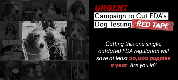 Taxpayer, now we need your help again: this time, to end FDA’s max-pain dog testing mandate. Will you pitch in to help us fund another winning campaign?