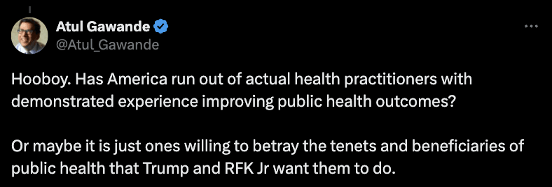 On news of O’Neill taking over as acting head of CDC, Atul Gawande, perhaps the best known public health voice in America, responded: I am skeptical that O’ Neill will use his limited political capital to stand up for the scientists working at CDC, or basic public health principles. The fact that RFK Jr picked him is a signal that O’ Neill will serve as a the type of rubber stamp that Monarez refused to be. Public health is not something that Trump cares much about. Indeed, he has distanced himself from his most impressive achievement of his first term: the Warp Speed production of vaccines. He has delegated oversight of public health to an anti-vaxxer because of this indifference. This delegation gives RFK Jr. a great deal of power to pursue his agenda. But it also makes him vulnerable. As a newcomer, he is more dispensable than others in Trumpworld. If the political costs of MAHA become too high, RFK Jr. could go the way of Elon Musk. Congress Has Been AbsentNone of this is normal. Richard Besser, a former CDC official who is now CEO of the Robert Wood Johnson Foundation, said he was “dumbstruck by how little oversight Congress has shown to the devastating moves that this administration has taken when it comes to public health.” But this is basically the story of Congress right now. With a Republican majority, they have offered no check on the Trump administration. All eyes are on Cassidy, the physician who ultimately provided the vote to confirm RFK Jr. Cassidy has said that hearings will follow because of the CDC departures. He has also said that any recommendations from RFK Jr.’s vaccine advisory committee will be “lacking legitimacy” given that “Serious allegations have been made about the meeting agenda, membership, and lack of scientific process being followed.” These are good first steps, but what RFK Jr. has shown us time and again that if given the chance he will absolutely implement his anti-vax agenda, even if it means lying to Congress or ignoring the science. Congress will not be able to finger-wag him back to sanity. Radical conspiracy theorists have real convictions, even if those convictions mean kneecapping American state capacity. Far from being cowed by the growing scandal, RFK Jr. seemed emboldened, saying: “There’s a lot of trouble at C.D.C., and it’s going to require getting rid of some people over the long term in order for us to change the institutional culture." As long as he stays in office, the American public has to assume that their public health is being actively threatened. A current CDC employee put it starkly: