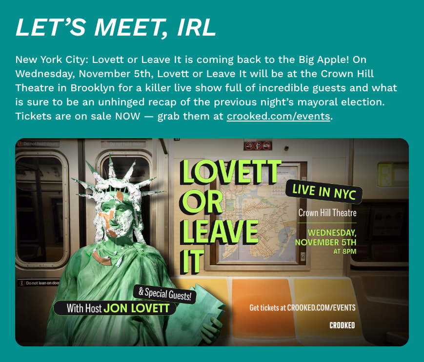 The Epstein files issue isn’t going away, no matter how badly Donald Trump wants it to. COCKTAILS & PUNCH 👊Can Donald Trump’s economic advisors successfully steer the country away from a future recession? Hell… can they just make it through dinner together without a fistfight? The answer to that second question is: Barely. Treasury Secretary Scott Bessent caused a scene inside one of Washington’s swankiest dinner clubs last week, by threatening to punch out Trump’s top housing official, Bill Pulte. The showdown took place at the conservative social club Executive Branch, where membership costs $500,000. While the club is believed to serve sushi and other small plates, Bessent reportedly offered Pulte a knuckle sandwich after being told that the housing finance official had been badmouthing him to the bossman. “Why the fuck are you talking to the president about me? Fuck you,” Bessent told Pulte, offering to take things outside, according to Politico. “I’m gonna punch you in your fucking face … I’m going to fucking beat your ass.” Eventually, the two manchildren sat at opposite ends of the dinner table, and this incredibly awkward dinner wrapped up without actual fisticuffs. These tensions are a bad sign for anyone hoping Trump’s erratic, impulsive economic decision-making will be leveled off by the cooler heads of sober advisors around him, in time to avoid the worst damage from his trade war. The economy is flashing warning signs, job creation has ground to a standstill, Trump is laying siege to the Federal Reserve, and concerns about inflation are rife. Fortunately, these mature gentlemen are on the case! WHAT ELSE?Israel’s military threatened Hamas with a “hurricane” of strikes on the Gaza Strip if the militant group doesn’t surrender. The attacks are already devastating: Israel struck a 12-floor building in Gaza City where displaced families were sheltering, only three hours after urging civilians there to leave. Hamas says that it is studying the latest ceasefire proposal. Donald Trump said that he’ll direct the Education Department to protect the right to pray in public schools. I wonder if this will apply to all religions, or just the ones he likes? The Trump administration said it began immigration enforcement in Chicago today, but local officials said they haven’t seen many signs of the so-called “Operation Midway Blitz.” I guess we’ll see if there’s another chilling citywide crackdown, or if Kristi “ICE Barbie” Noem just likes to come up with stupid nicknames. On that note, the Supreme Court lifted restrictions on “roving” ICE raids at places like bus stops, car washes or Home Depot parking lots. A lower court judge had deemed the raids unconstitutional, saying people were being detained without probable cause. Justice Brett Kavanaugh, however, wrote that it’s reasonable to question people based on “common sense” criteria… i.e. if they can’t speak English well, or work as daylaborers. This is a heinous ruling, even for him! A venture capital fund linked to the Trump family now has more than $1 billion in assets, according to Reuters. 1789 Capital’s coffers blossomed dramatically after Donald Trump’s election, which came the same month that Don Jr. was named partner at the fund. Since then, the organization has struck tons of deals — in yet another glaring example of the president’s corruption. The trial of Ryan Routh, the man charged with attempting to assassinate Trump at his Florida golf course last year, begins today. This dude is… um, a character: After firing his legal team in July, Routh proposed a “beatdown session” with Trump, and suggested trading himself to China or Iran in a prisoner exchange, in court filings. “It was ridiculous from the outset to consider a random stranger that knows nothing of who I am to speak for me,” Routh wrote in a letter to the judge. “Best I walk alone.” Light at the End of the Email…House Speaker Mike Johnson walked back his own comment describing Donald Trump as an “FBI informant” on deceased child sex predator Jeffrey Epstein. Nice try, Mike! A 20-year-old American pilot accused of landing his plane illegally in Chilean territory was released over the weekend. He has flown to six of the seven continents to raise money for childhood cancer research, and I really hope he gets to the last one! A ‘Star Wars’ aficionado bought Darth Vader’s lightsaber for $3.6 million at auction — the very same one used by David Prowse during “The Empire Strikes Back” and “Return of the Jedi.” The buyer’s name wasn’t made public, but I have a feeling Scott Bessent would really like to use the force on some of his colleagues. Hikers in Colorado were greeted at the top of Huron Peak, one of the state’s tallest mountains at 14,000 feet, by a man wearing an ice cream cone costume and a fake moustache… handing out free ice cream. The guy had climbed the peak with a 60-pound pack of treats and dry ice, set up a camping chair, and cracked open a beer while waiting for visitors. This is legend dairy. You’re currently a free subscriber to Crooked Media. For the full experience, upgrade your subscription. |