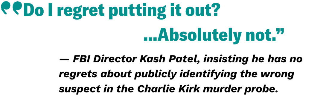 FB-OY….Kash Patel is scrambling to make himself look like the hero of the Charlie Kirk murder probe. It’s not working — to the point where his job is now in question.