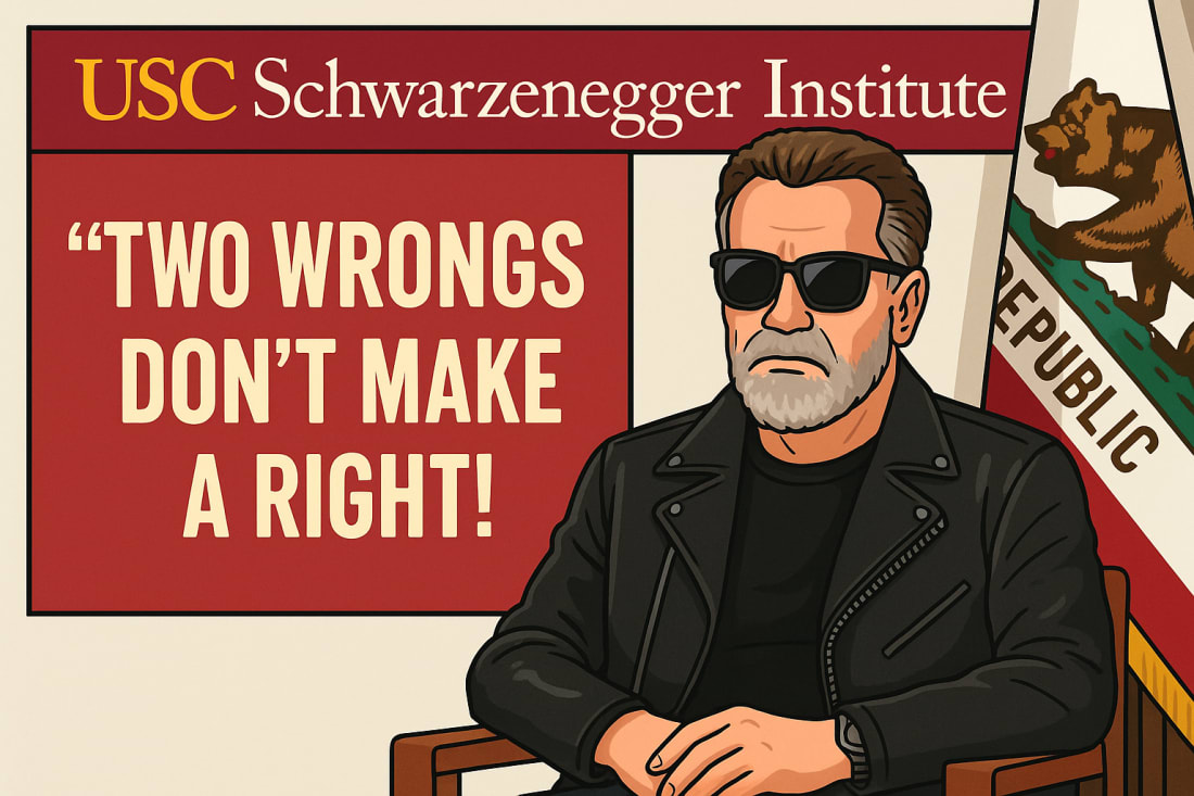 Our morning content is available for free to all subscribers. But you really should consider a paid subscription. This unlocks our afternoon e-mails, our Saturday “What is Jon Reading” e-mail, and analysis on breaking news. Normally a subscription is a modest $7 a month or just $70 for the year. When you add it up, it’s like 8 cents every time to break the pay wall! Arnold Schwarzenegger Wants To Terminate Newsom’s Gerrymander Power GrabThe former governor, fresh off a workout in his “Terminate Gerrymandering” tee, calls out Proposition 50 as an “insane” assault on voter-approved reforms at a packed USC event.
