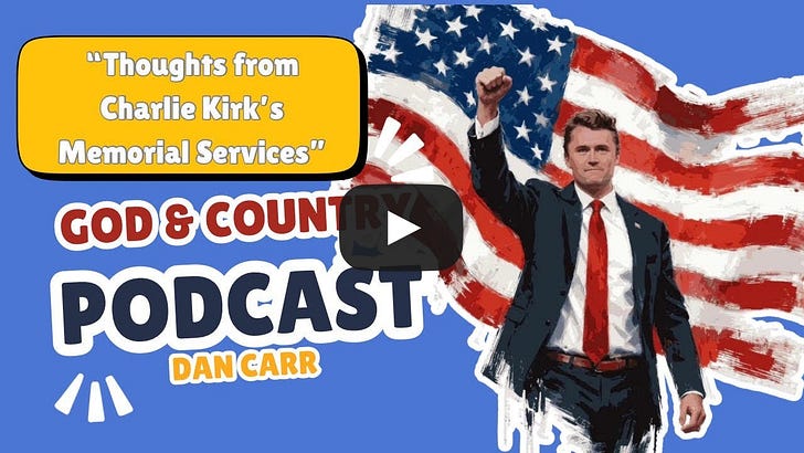 I share my thoughts on Charlie Kirk’s memorial service. It was powerful, moving, and most of all, Jesus was lifted in every part of it. In the midst of the sorrow, there was hope, because the Gospel was boldly proclaimed. It was so encouraging to see Christ at the center and to be reminded that even in loss, God is still working for His glory. #CharlieKirk #Faith #JesusSaves #HopeInChrist #MemorialService #GodAndCountry #ChristianConservative #JesusIsLord Dan Carr You're currently a free subscriber to Dan Carr. For the full experience, upgrade your subscription. |