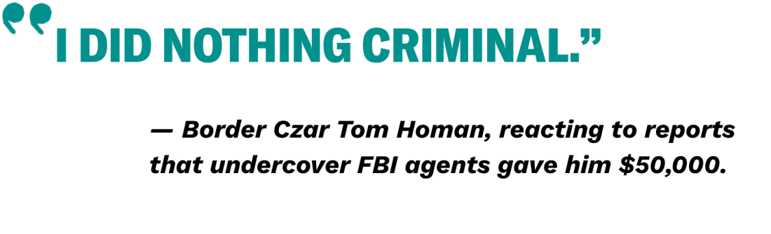 WHEN YOU’RE A CZAR…The Trump administration’s fumbling response to Tom Homan’s CAVA bag scandal is getting awkward… and Democrats are pressing for answers.