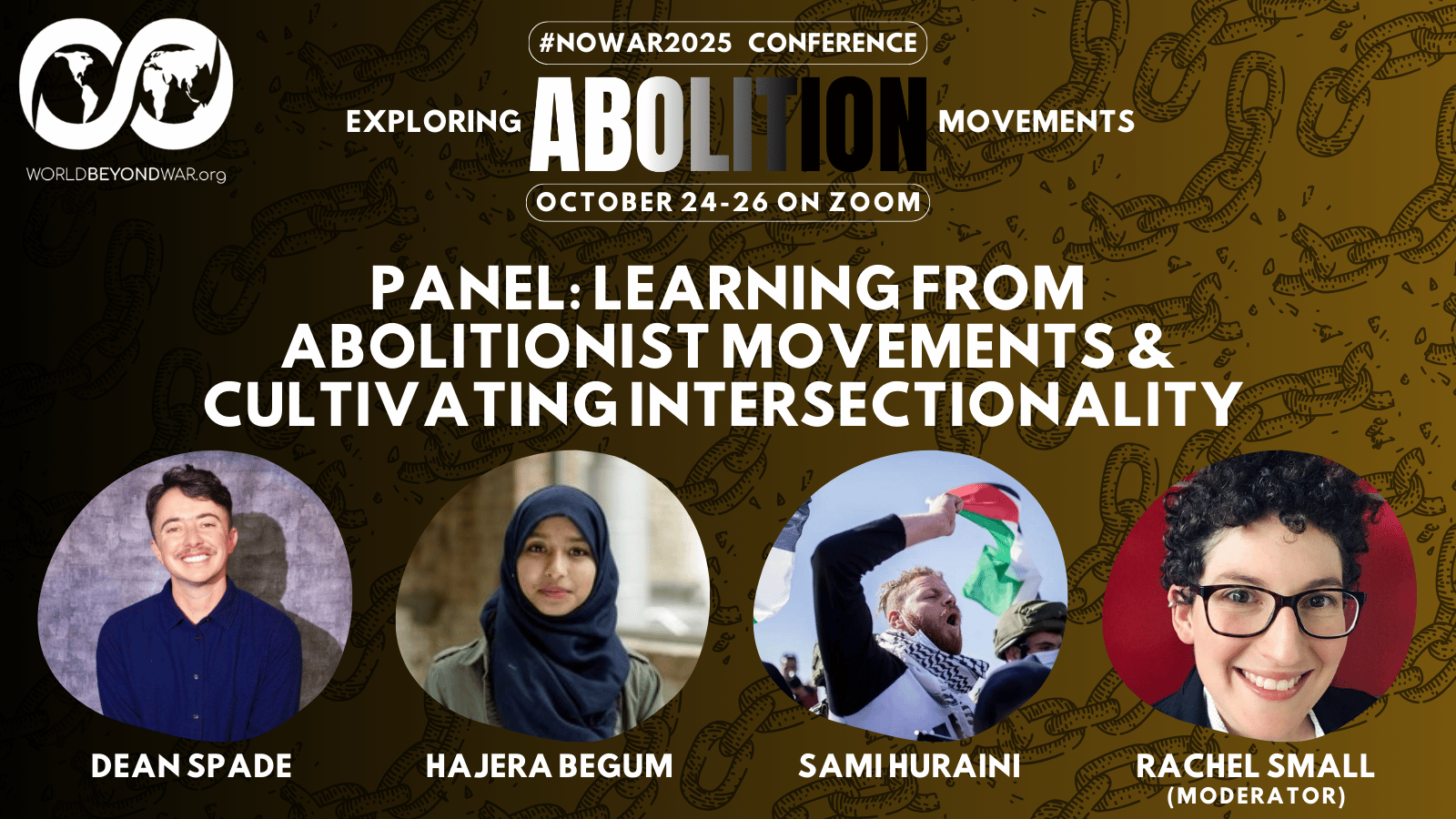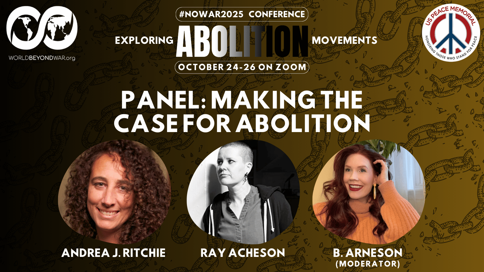 The concluding day of the conference on Sunday, October 26 will help us envision the abolitionist future, a world beyond war.