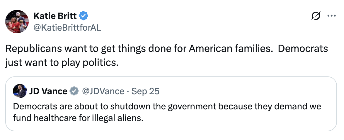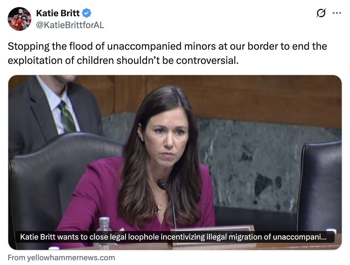 Senator Britt, who has emerged as a leading Republican voice on the issue, argued that Senate Democrats engaged in deliberate efforts to stall the confirmation process. She pointed to Majority Leader Chuck Schumer and others, saying their actions effectively amounted to changing Senate rules by imposing delays across the board. | | | I didn’t run for Senate to sit on the sidelines. I’m a mom, a conservative, and proud to stand for every corner of Alabama—our cities, small towns, and rural communities alike. I’m rooted in faith, built on family, and committed to making Alabama stronger and better for generations to come. Alabama is a place of hard work, strong values, and unyielding independence. But the Left is trying to tear that all down. I didn’t come to Washington to play games. I came to fight for every Alabamian who feels forgotten and left behind. Whether it’s securing our borders, protecting our children, or defending our way of life, I’m here fighting for Alabama’s future. This fight isn’t easy, but it's worth it. And I’m not going anywhere. Will you stand with me? | | | | Celebrate conservative leadership and show your patriotism with this unique, high quality, Made-in-America hat. | | | Follow Katie On Social Media: | SIGN UP FOR SMS ALERTS: TEXT "KATIE" TO 27488 | By texting KATIE, you consent to join a recurring SMS/MMS text messaging program that will provide alerts, donation requests, updates, and other important information. By participating, you agree to the terms & privacy policy for auto dialed messages from Britt for Alabama to the phone number you provide. Msg&data rates may apply. Reply HELP for help or STOP to opt-out at any time. SMS information is not rented, sold, or shared. View Privacy Policy and Terms & Conditions | | | Paid for by Britt for Alabama, Inc. | Britt for Alabama, Inc., PO Box 3759, Montgomery, AL 36109 | | | |