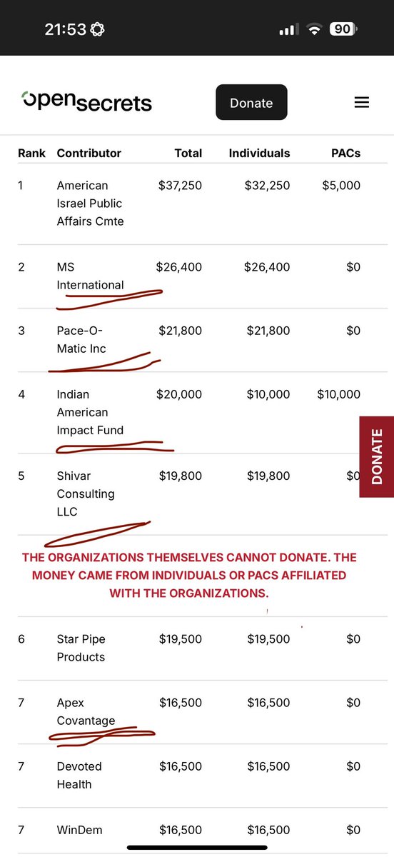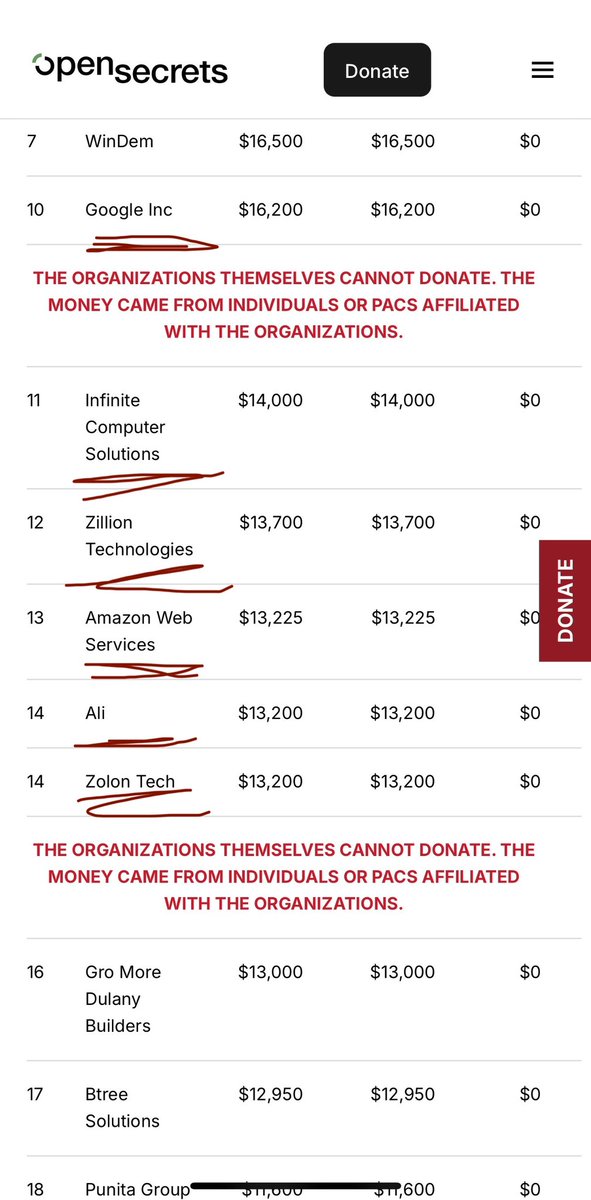 Representative Suhas Subramanyam calls President Trump’s $100,000 H-1B visa fee “economic sabotage.” But look at his donor list: nine of his top twenty contributors are data outsourcing and H-1B–dependent firms. |