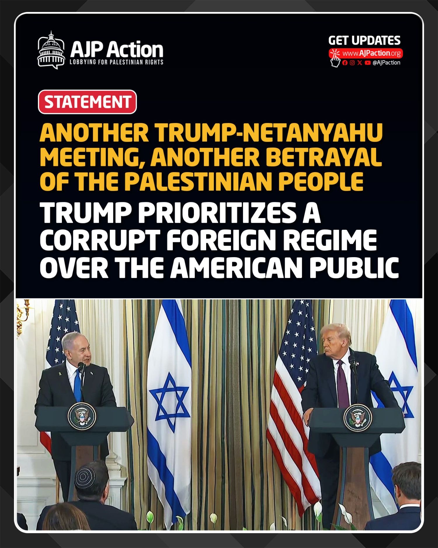 Trump Prioritizes a Corrupt Foreign Regime Over the American Public Dear Email, At today’s joint press conference with Israeli Prime Minister Benjamin Netanyahu, President Trump spoke as though the United States were beholden to Israel rather than the other way around. He seemed to forget that he is the President of the United States, entrusted with safeguarding American interests. His remarks reflected not “America First,” as he claims, but “Israel First.” Once again, Netanyahu outmaneuvered Trump, manipulating the optics and narrative to his advantage. If Trump genuinely seeks “eternal peace” in the Middle East, he must begin by curbing Israel’s recklessness and holding it accountable for its crimes. That includes ending U.S. complicity in Israel’s violations of international law, its destabilizing actions across the region, and the administration’s financial and political support for Israel’s genocidal war on Gaza. Peace cannot be a reward for criminality. It cannot be built atop Israel’s occupation of Palestine, its repeated assaults on Gaza, the West Bank, Syria, Lebanon, and beyond. True peace demands justice, an end to occupation, aggression, and impunity. While Israeli prisoners receive global attention, thousands of Palestinian detainees—many held for decades, including women and children—remain invisible. To humanize one side while erasing and enabling the suffering of the other only deepens the imbalance and perpetuates instability. History did not begin on October 7, nor will it end there. The issue is not about security arrangements in Gaza that serve Israel’s interests, but about the root causes: occupation, apartheid, and aggression. It is the Palestinian people who need protection from Israeli apartheid, occupation, and ethnic cleansing, backed by American power. They do not need international guardianship. They need, want, and deserve nothing less than the right to self-determination, exercised freely and without coercion. The United States, Israel, and all governments complicit in the war on Gaza bear moral and legal responsibility to fund its reconstruction—without strings, without interference, and without using aid as leverage against the Palestinian people. How can Palestinians trust Trump’s promises of peace when he speaks of Gaza’s “real estate value” as a strip of land on the sea? Talk of reforming the Palestinian Authority rings hollow when Israel—a state that flouts human values and international law—is governed by extremists and shielded from accountability. Netanyahu is right about one thing: this is a war between civilization and barbarism. But it is Israel that embodies the latter, as the world has been witnessing in Gaza for two years now. Trump, and the U.S. government as a whole, continues to face a choice: continue enabling this brutality, or finally hold Israel accountable and redirect the administration’s resources toward serving the American people. |
