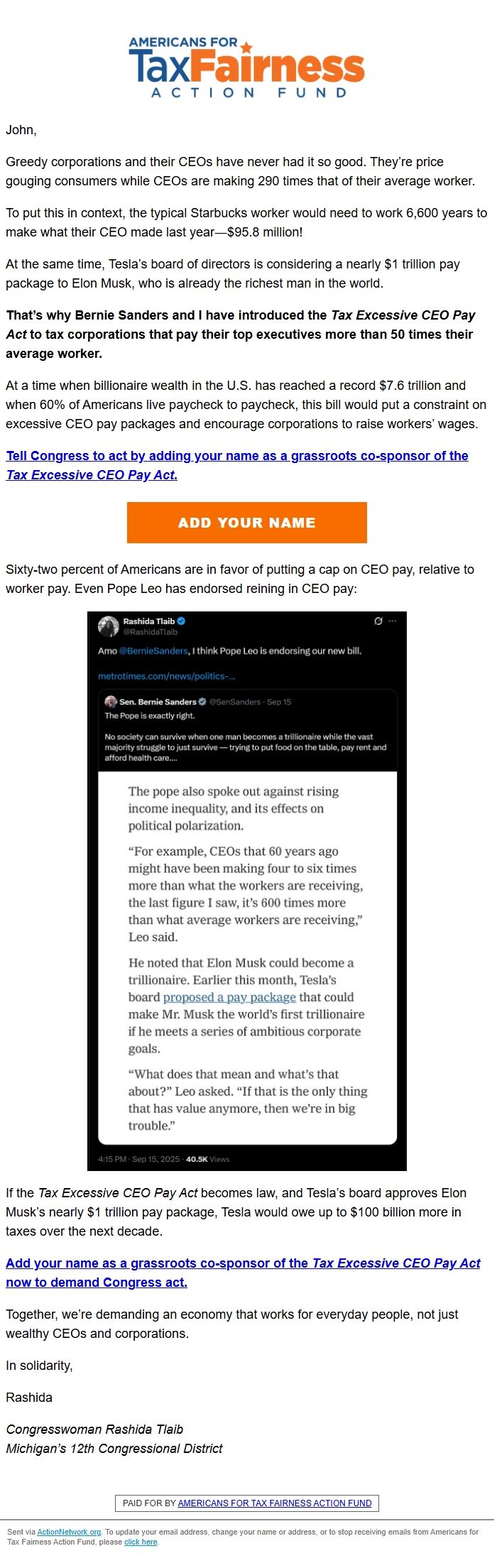 Rashida Tlaib via Americans for Tax Fairness Action Fund <