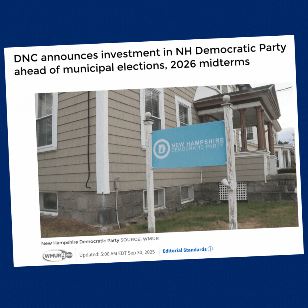 The Democratic National Committee just announced a five-figure cash dump into New Hampshire Democrats, and that’s just the start. Washington insiders are parachuting in money to bankroll their political machine, hire organizers, and flood our towns with attack ads and glossy mailers.